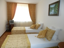 Номера категории " Комфорт" привлекают постояльцев, которые ценят комфортные условия по разумным ценам. Вы можете забронировать как однокомнатный номер, так и номера, состоящие из спальни и гостиной. В номерах категории «Комфорт» Вас ждёт всё необходимое для приятного пребывания: односпальная, двуспальная или две раздельные кровати, плазменный телевизор, шкаф, письменный стол, мини-бар, душ с набором косметических средств, фен, санузел.
